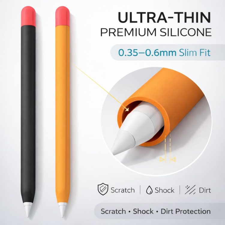 Mizi Silicone Case for Apple Pencil 2 & Pro (2 Pack) – Black/Orange