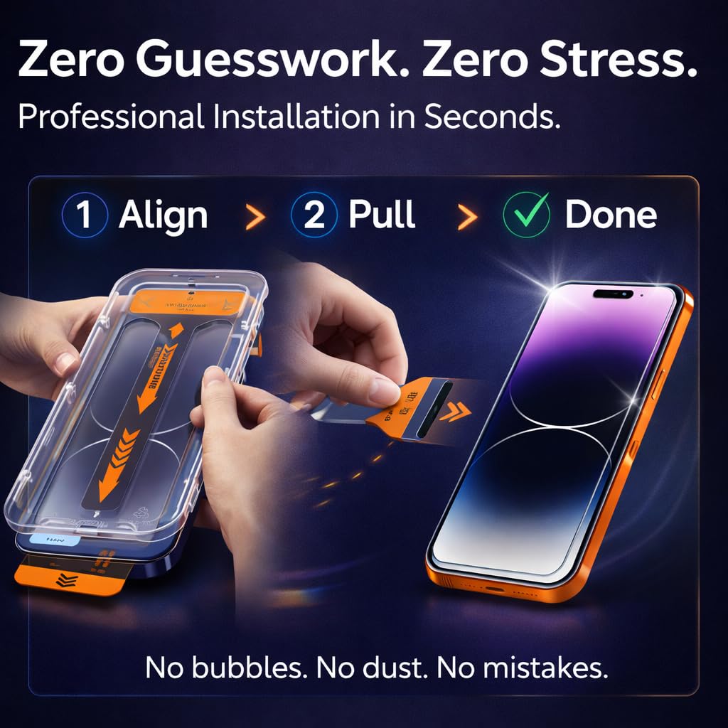 Protect your iPhone 17 Pro with Mizi 9H tempered glass. Enjoy military-grade protection, HD clarity, and quick bubble-free installation with the included alignment tray.