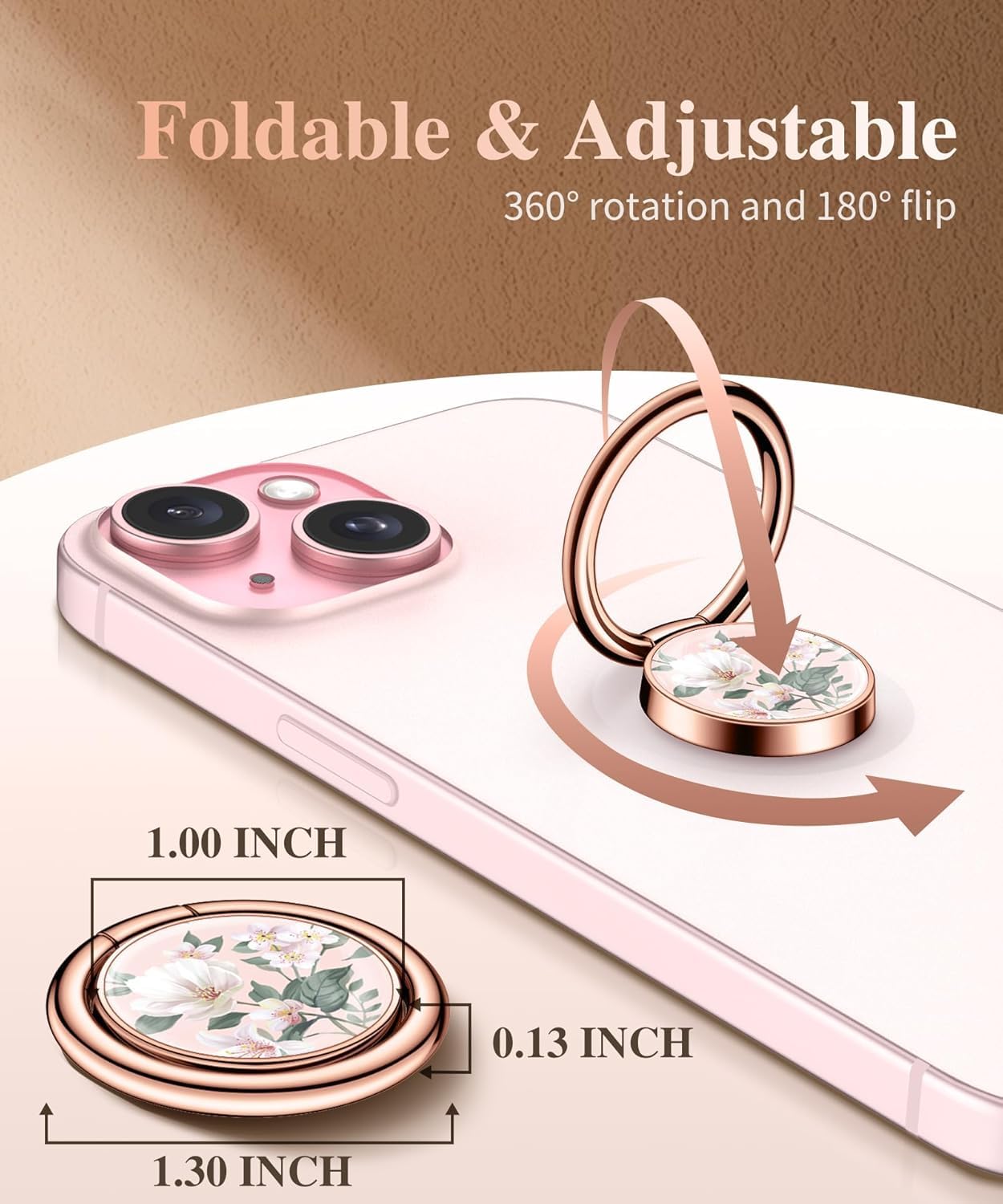 Add style and functionality to your phone with the Mizi Marble Cell Phone Ring Holder. Crafted from durable zinc alloy and stainless steel, it provides a secure grip and a foldable 180° kickstand for hands-free viewing. Its elegant white floral marble design adds a unique touch while remaining practical for everyday use. Compatible with most smartphones, including iPhone 16/15/14/13/12 series and Samsung Galaxy S24/S23 Ultra, it’s the perfect combination of beauty and utility.