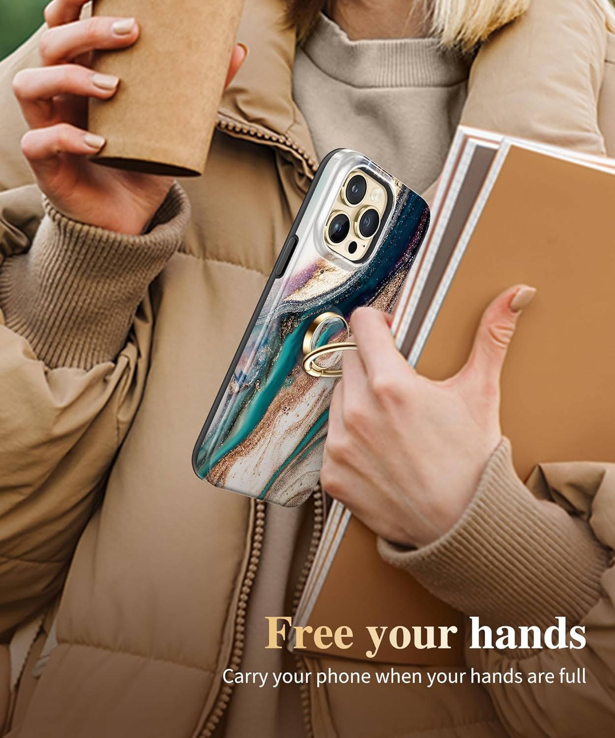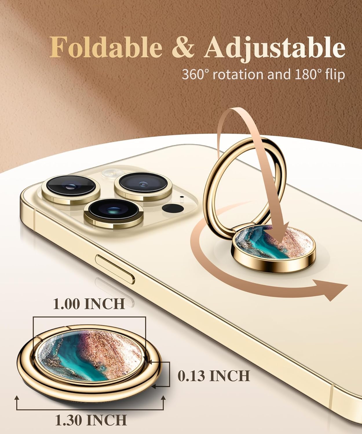 Mizi Marble Phone Ring Holder – Kickstand Grip (Golden Sand)