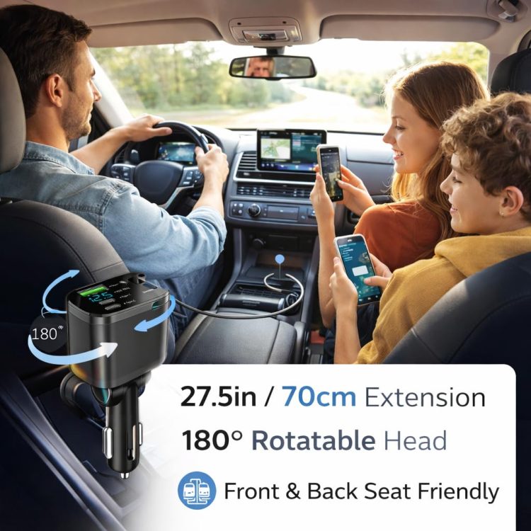 Mizi 69W 5-in-1 Retractable Car Charger -Black